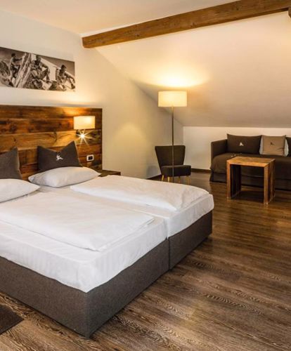 Die geräumigen Junior Suiten im Hotel Andreas Hofer sind ca. 35 bis 39 m² groß, mit Telefon, Safe, Schreibtisch, Flachbildfernseher mit Kabel-TV und Wireless-Internet ausgestattet und verfügen über einen Balkon mit Garten- und Bergblick, sowie über eine Schlafcouch. Eine auffüllbare Flasche Trinkwasser und Bademäntel stehen für die Dauer des Aufenthaltes im Zimmer zur Verfügung. Die Zimmer haben einen Holzparkett Boden.